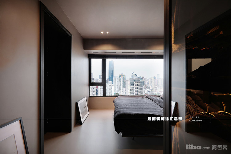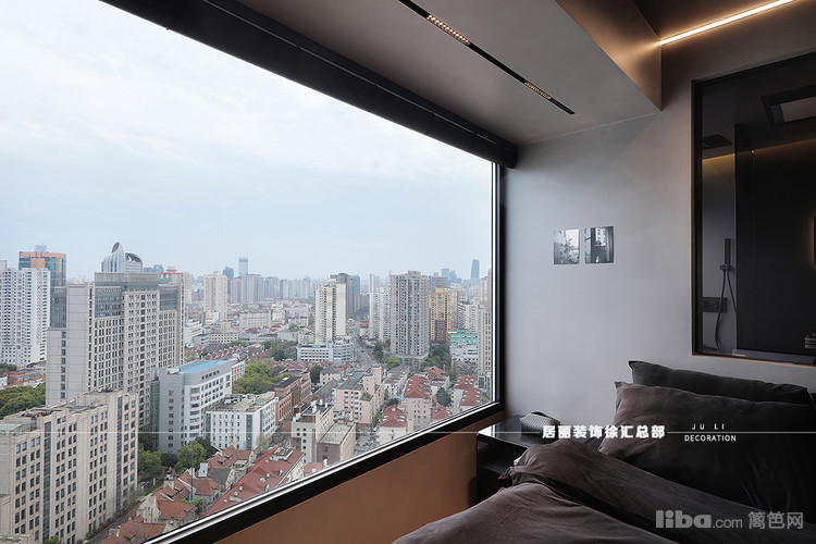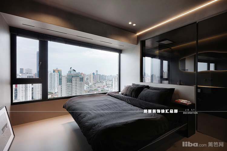 百叶帘演尽了窗景的诗意,含蓄且悠然,床头黑色玻璃隔断延伸了建筑的“触角”,附和光的节奏,若隐若现