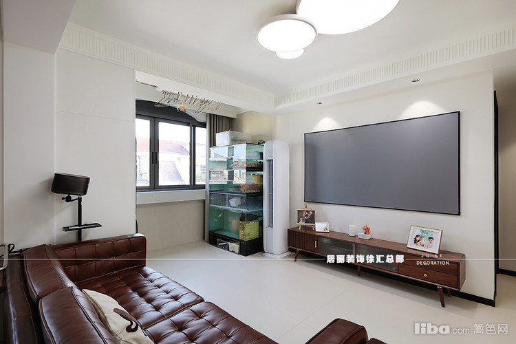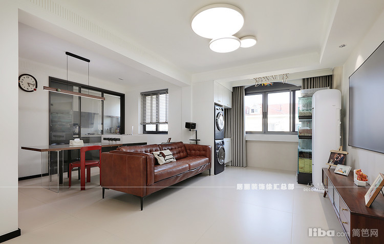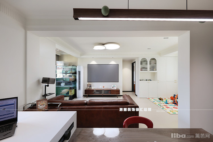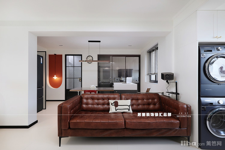 深咖色的沙发和胡桃木色的家具又把我们拉进了复古的氛围里