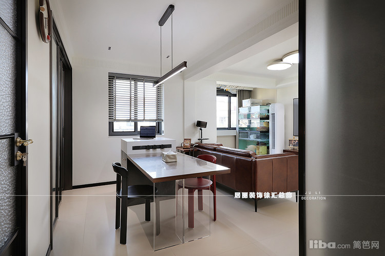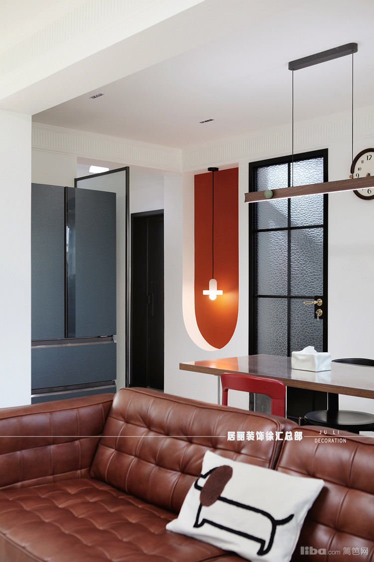 进门口倒圆弧的设计和小吊灯给整个空间一个跳跃点,沉稳又不沉闷。