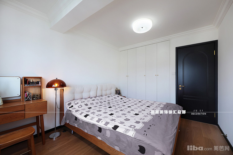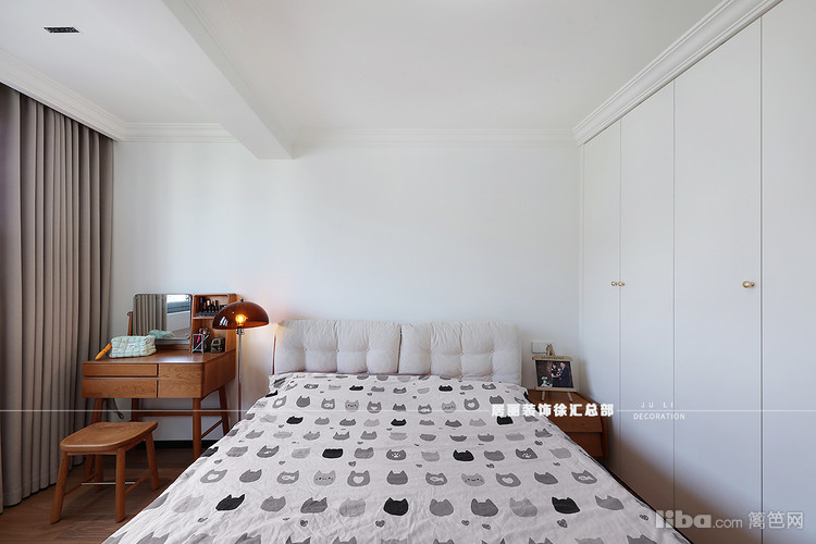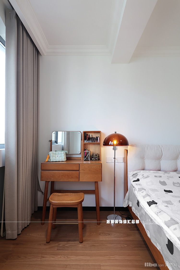 嵌入式的衣柜使整个空间显得大了许多,卧室主打一个安静沉稳,家具的选择上选用木色,耐看又不过时。