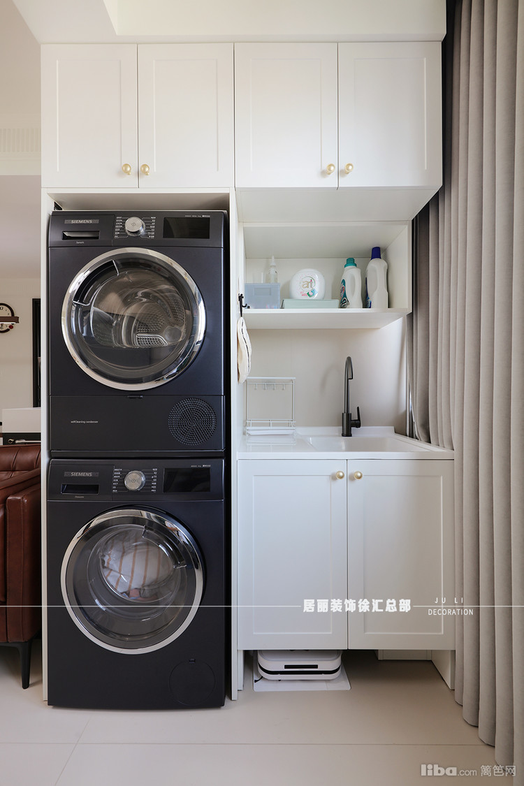 连通大阳台宽敞明亮,洗衣机烘干机搭配洗衣柜
