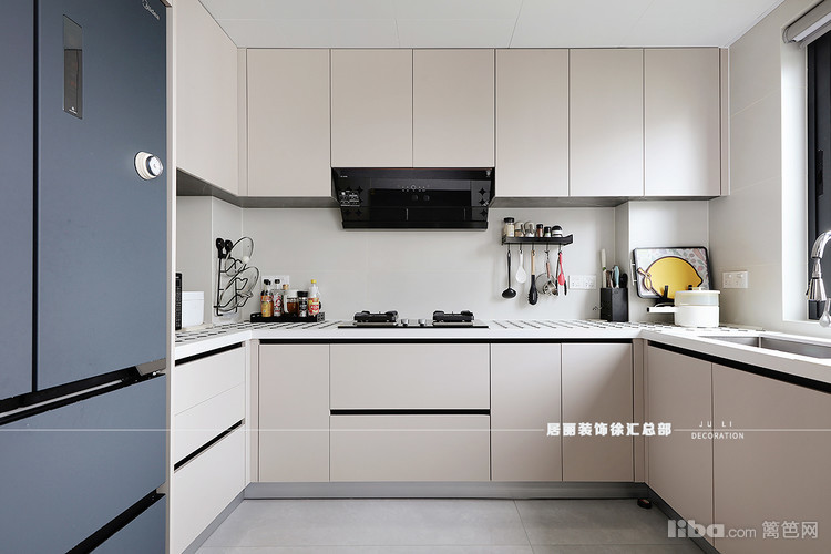 厨房 充满阳光,大空间白色橱柜阳光洒进来美好而温馨。整个空间,显得那么舒适自然