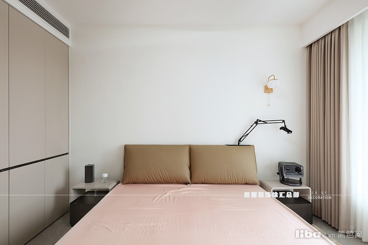 主卧简洁、干练,让家中呈现一种自然的舒适、干净之美。配着个性的床头灯,更显明朗和温馨