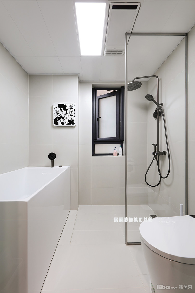 舒适的浴缸 纯白干净的方格瓷砖搭配品质洁具、质感顶灯,整体空间干净利索