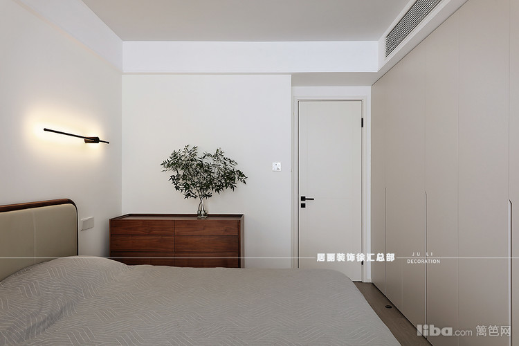 空间化零为整,在一面墙上打造了顶天立地衣柜设计,将空间收纳发挥到极致,满足业主一年四季的收纳需求。