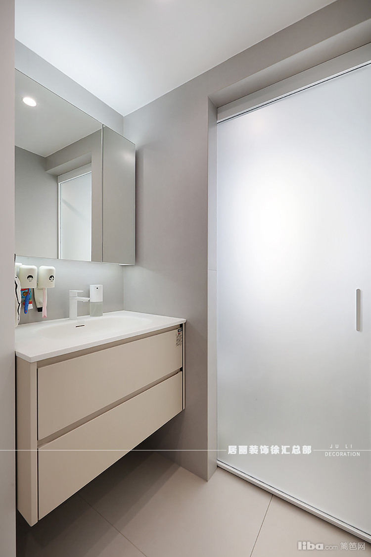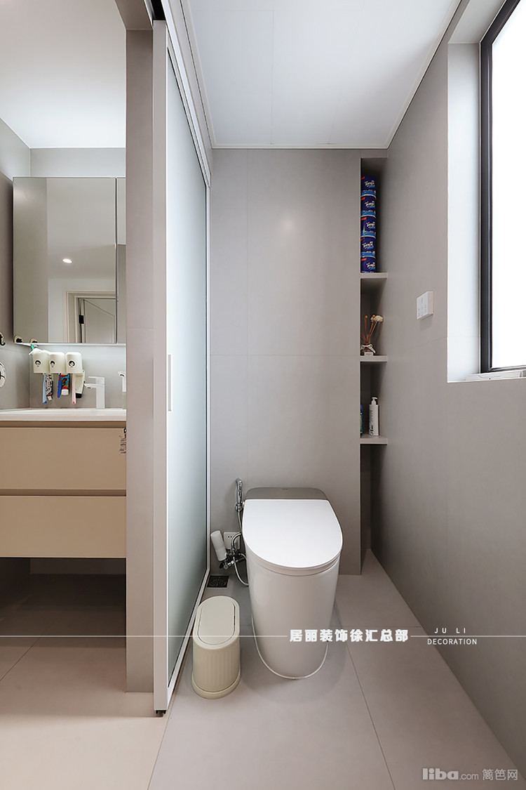 洗手台外置,打造了二分离卫生间,可以同时满足刷牙和上厕所的需求。里侧淋浴区采用玻璃隔断,还满足了干湿分离的需求。