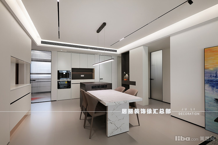 大理石餐桌的细节点缀,增添了时尚高级的质感,巧妙的照明系统,营造了温和舒适的氛围照明