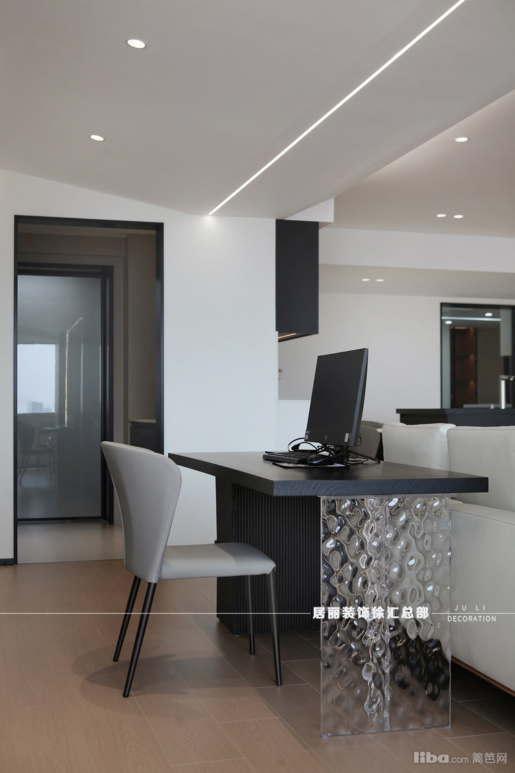 以冷色调的黑白灰为主基调,搭配木质材质与简约造型的家具,营造出一种低调优雅的氛围。