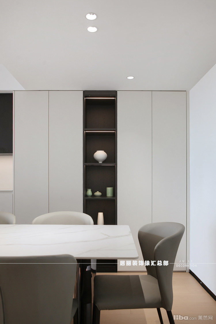 餐桌周围的石墨色系椅子与整体色调协调一致,体现了对细节把控的严谨态度。