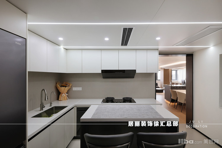 厨房布局紧凑合理,采用了开放式设计,流畅的动线和充足的工作台面为日常烹饪提供了便利。