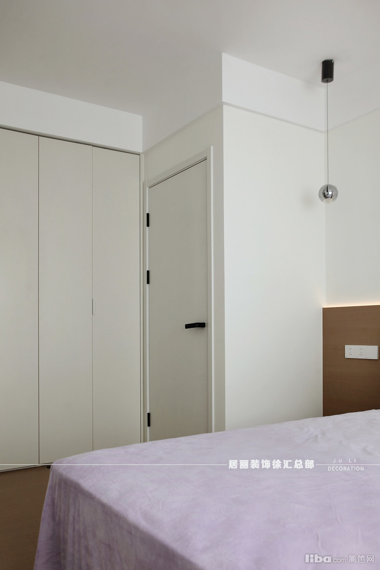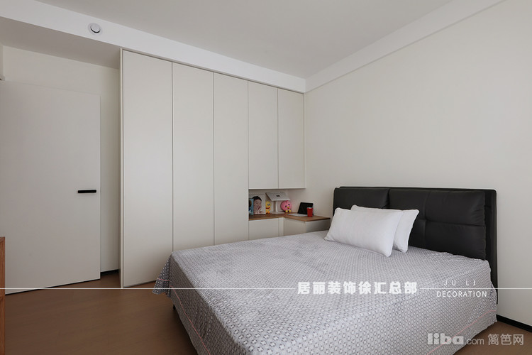 大面积的衣柜以无拉手的整体式设计呈现,为空间营造了简洁舒适的感受。