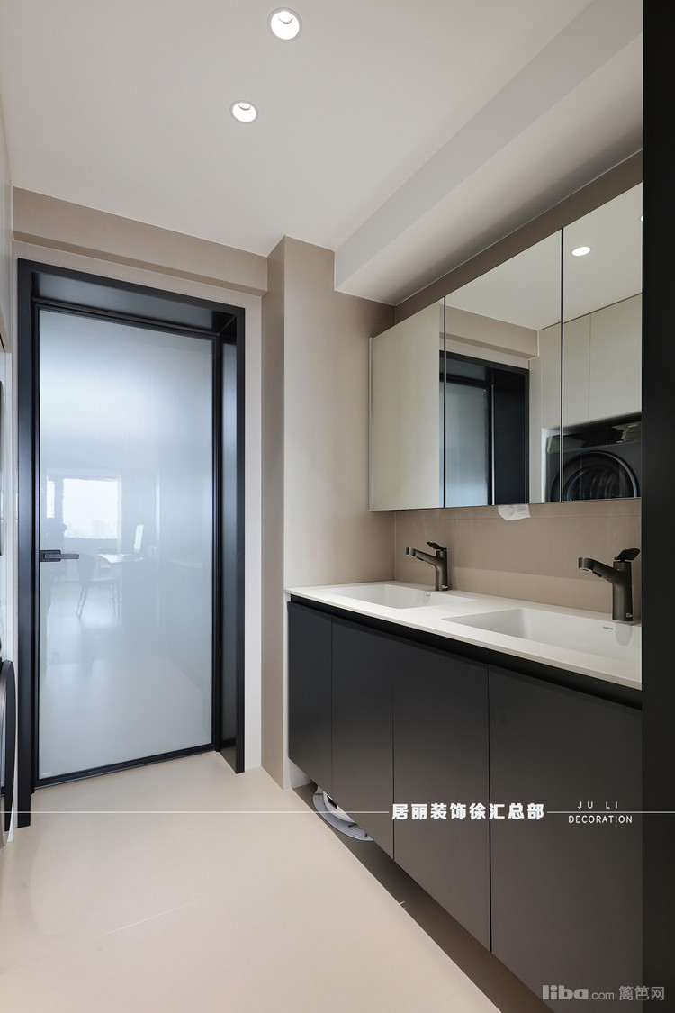 大面积的镜面和清晰的几何线条, 突出了空间的简约美学。