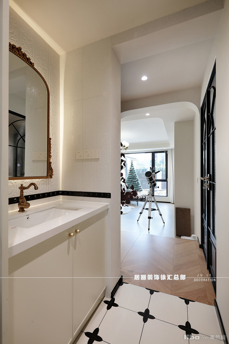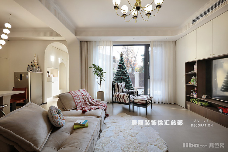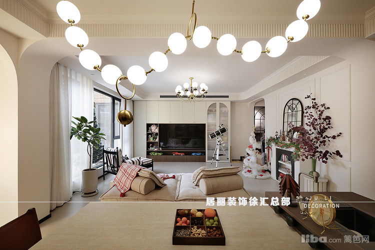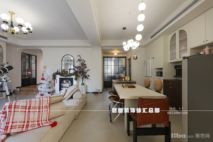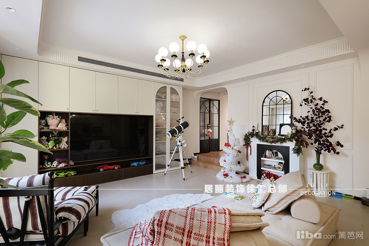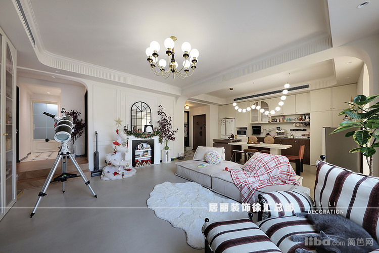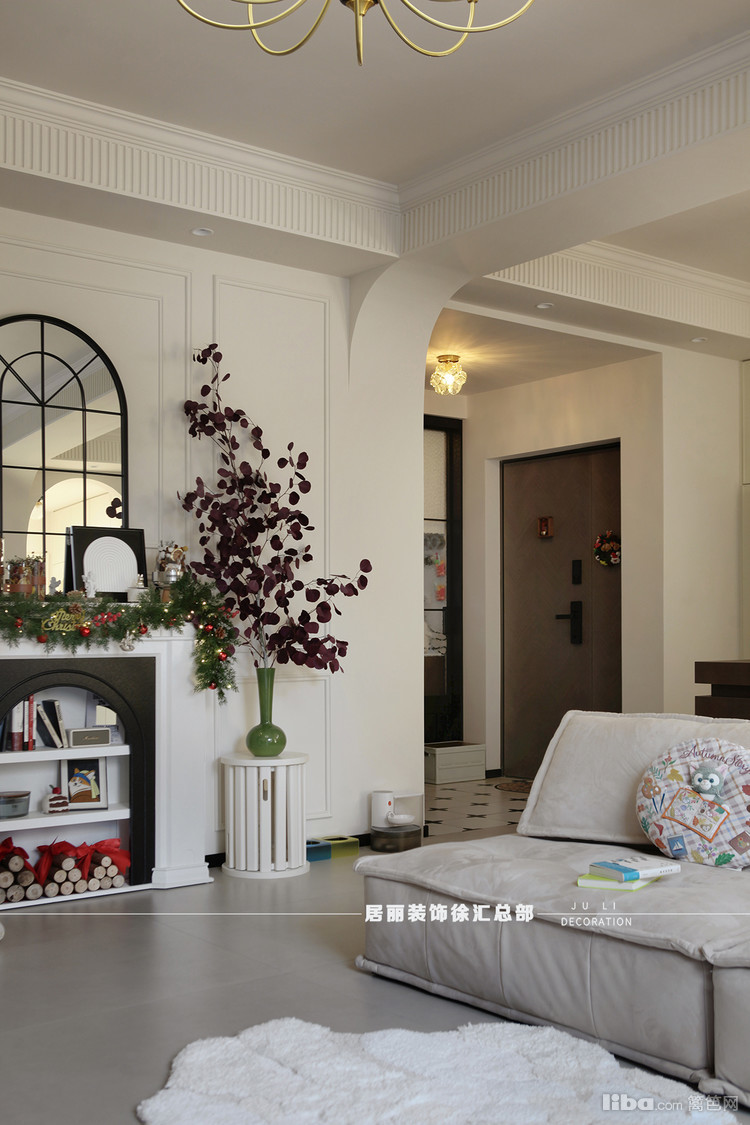在整体配色上,地砖采用了柔光砖。北面墙增加了装饰壁炉和石膏线条。