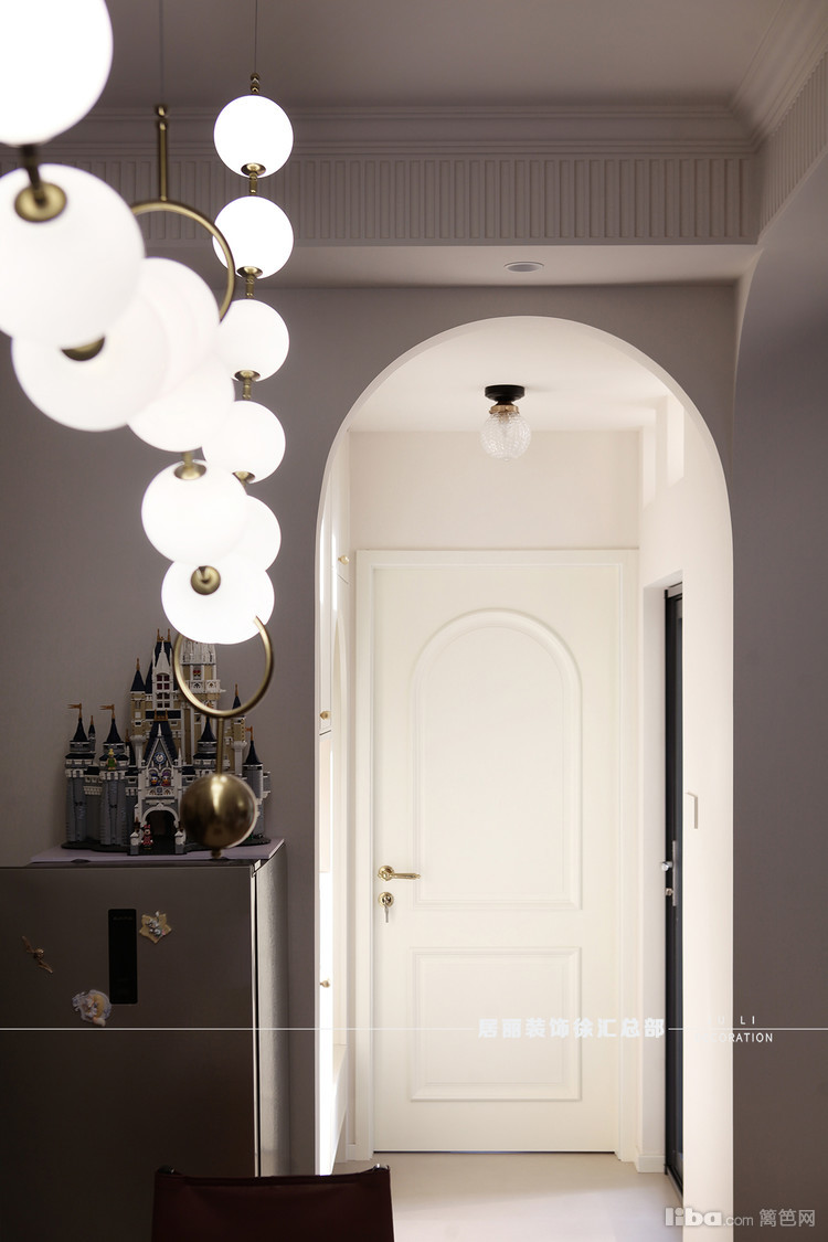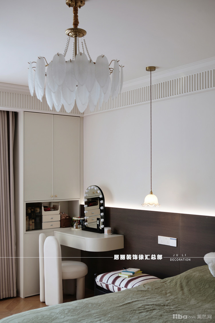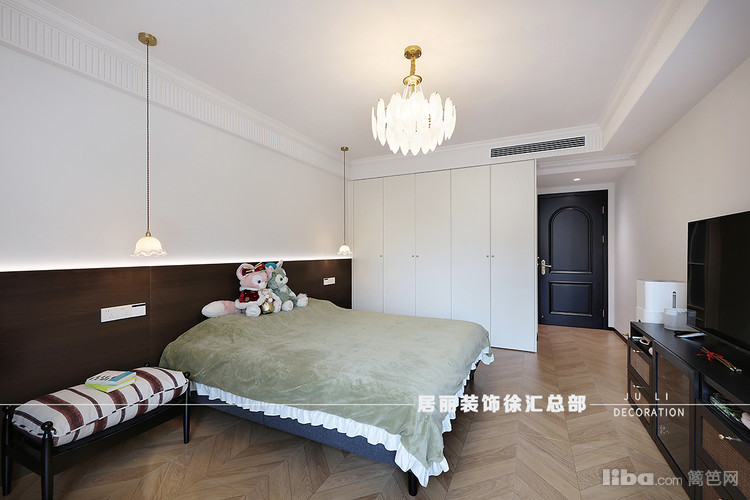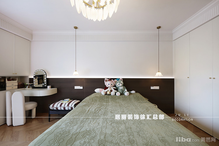 主卧门口区域做了些景观装饰,主卧采用全屋定制和活动家具相结合。