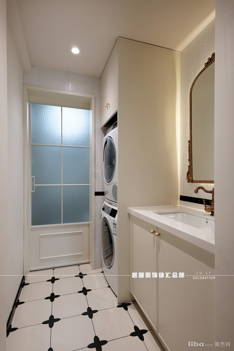 卫生间采用了干湿分离的设计。干区除了洗手盆还放了洗烘套装。