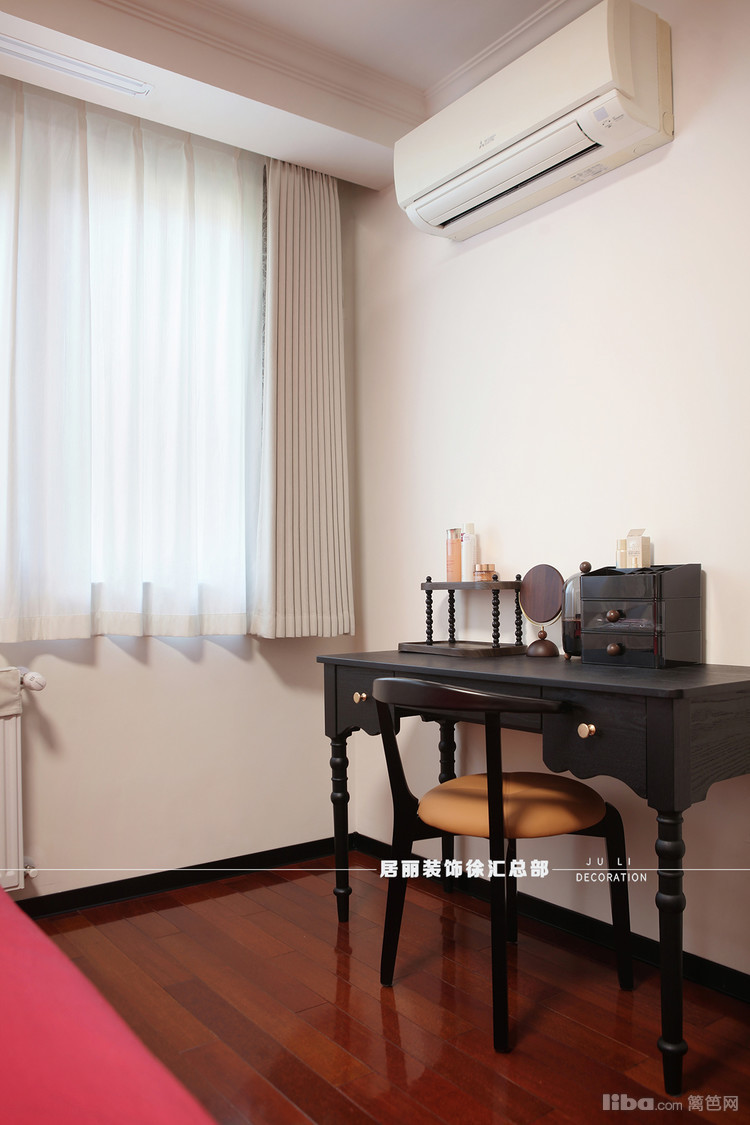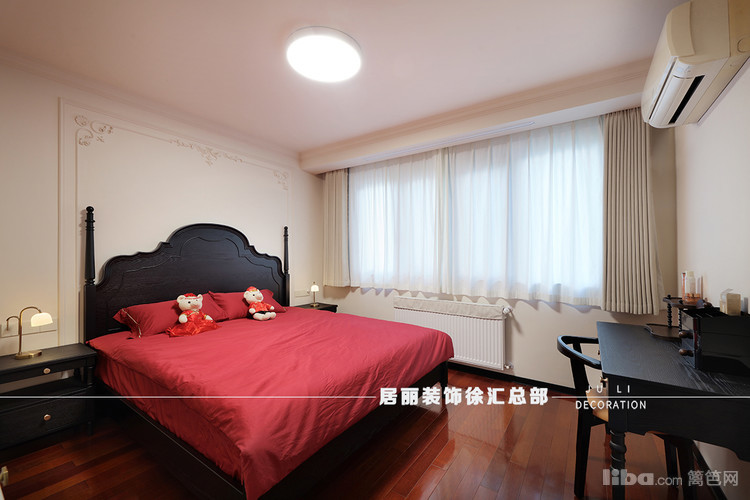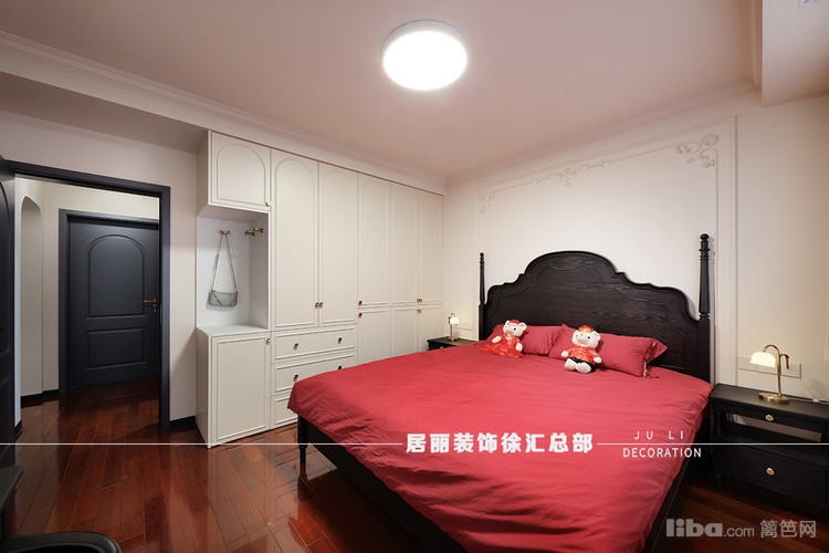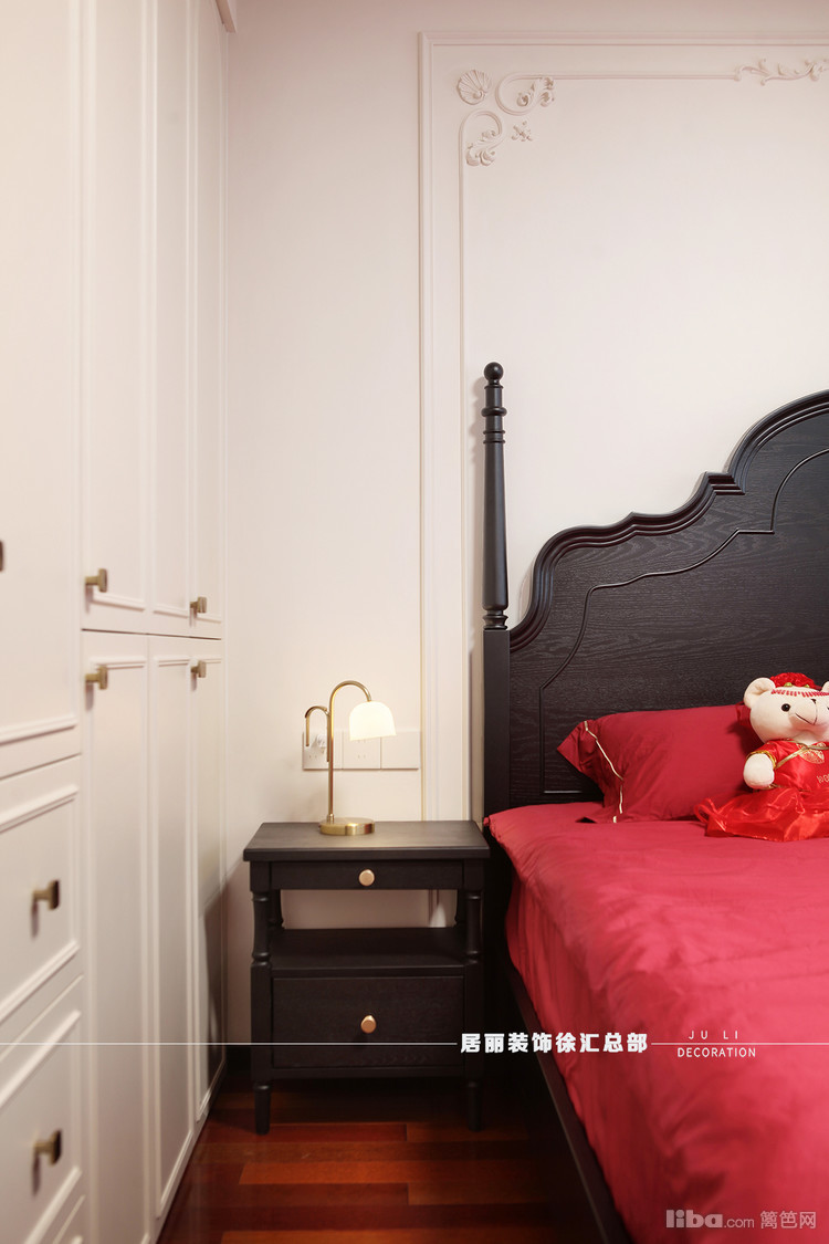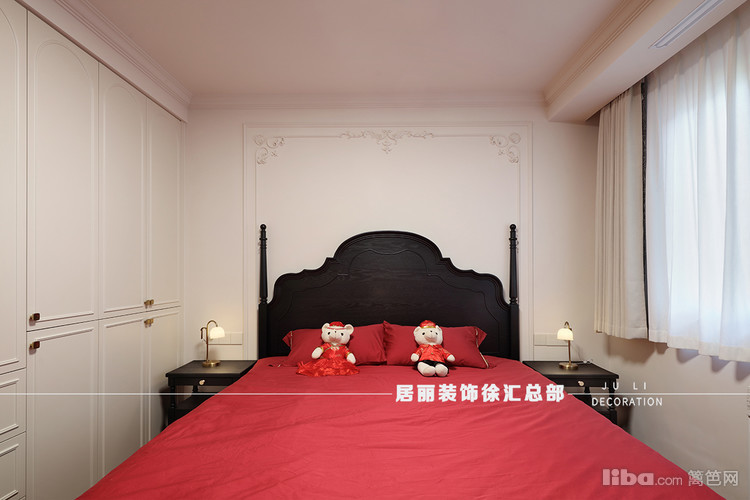 主卧采用全屋定制和活动家具相结合。背景墙法式线条和复古家具相结合。