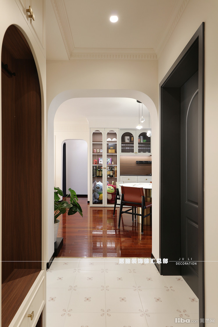 色彩搭配有深有浅,圆弧、线条、拱形门、小花砖等元素贯穿整个设计风格。
