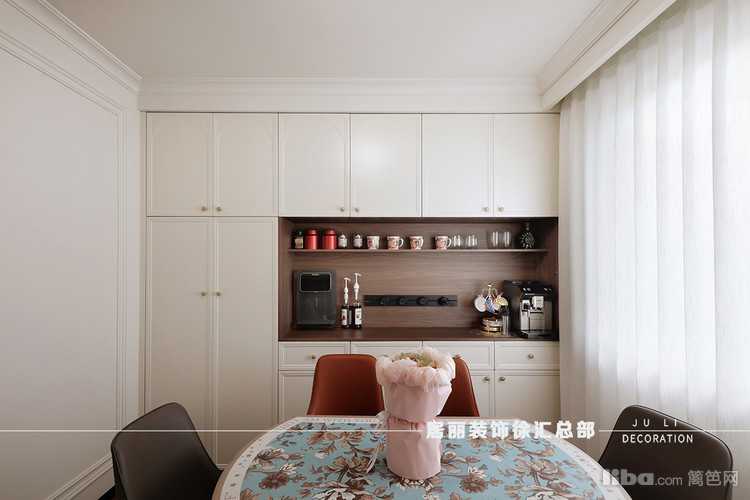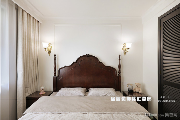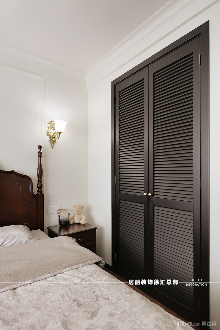 百叶门的线条感又能为空间增添利落感,避免美式木家具的厚重沉闷。确保全屋设计语言的连贯与统一。