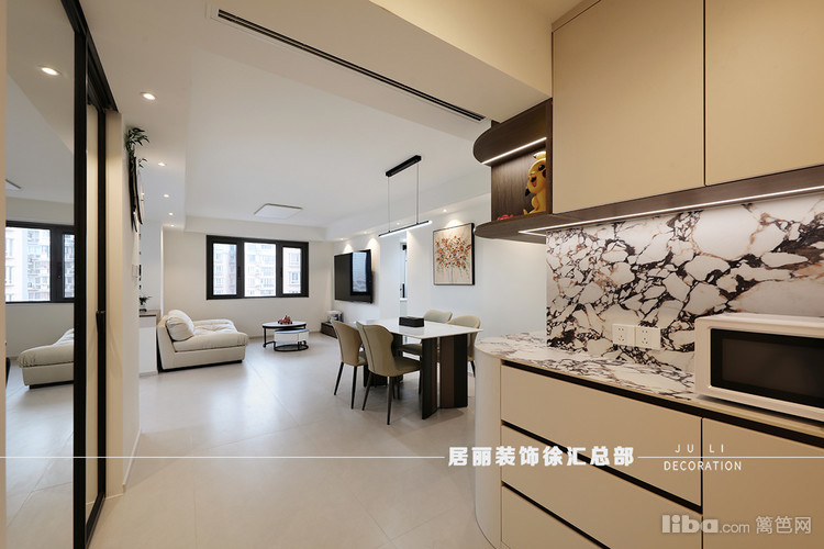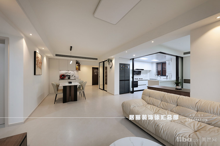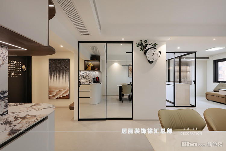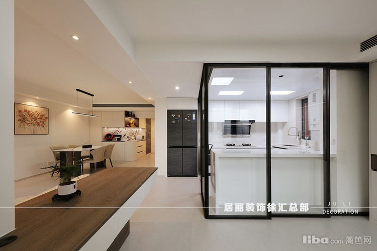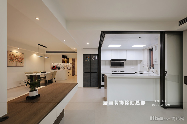 当需要烹饪时,将移门拉起封闭,防止油烟到客餐厅。这样也增大了空间视觉效果。