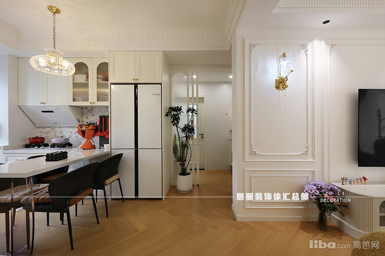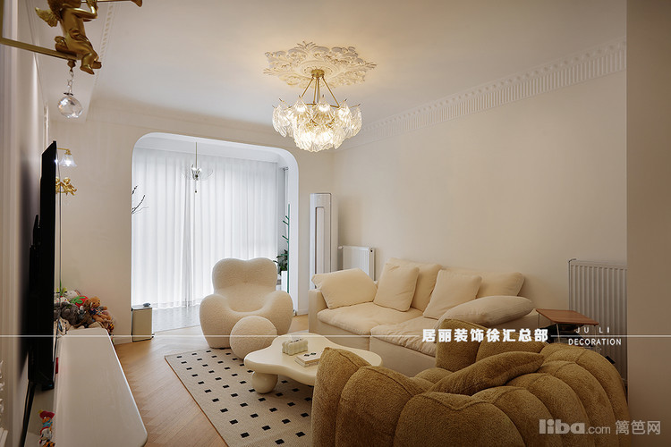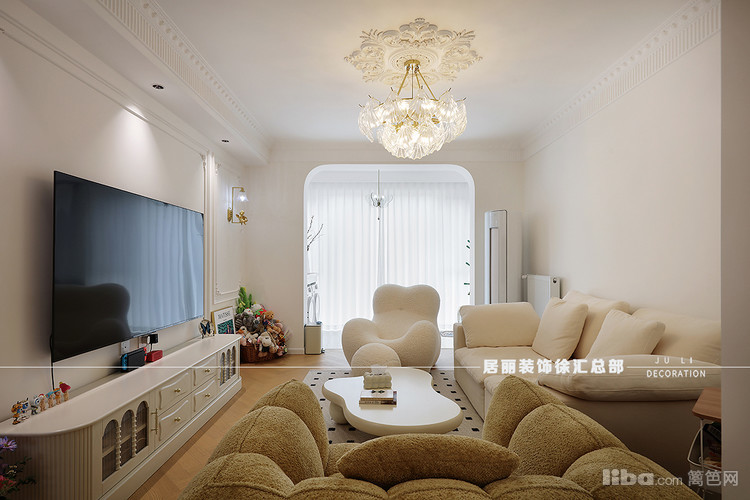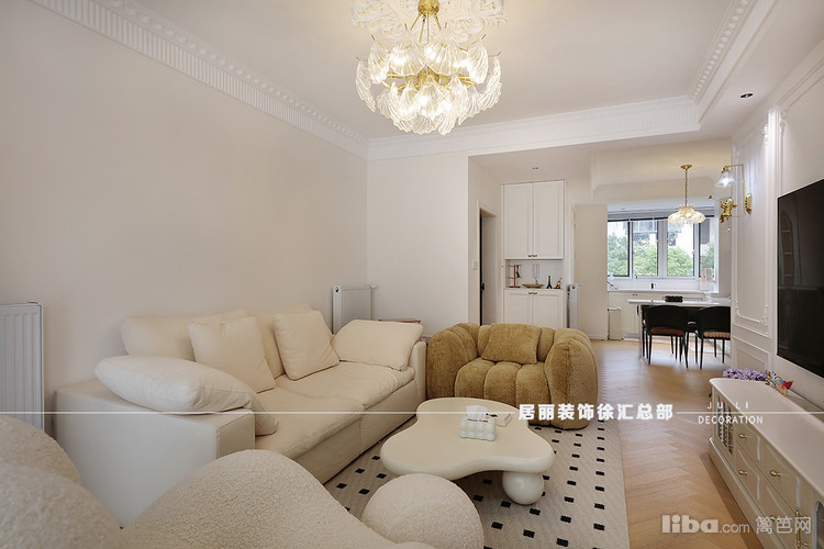 客厅与阳台门洞之间也采用拱形门洞造型,增加了这种法式氛围,