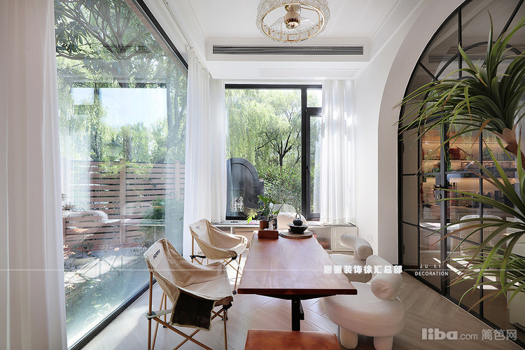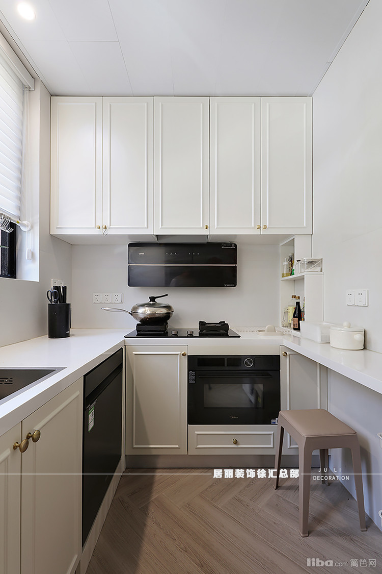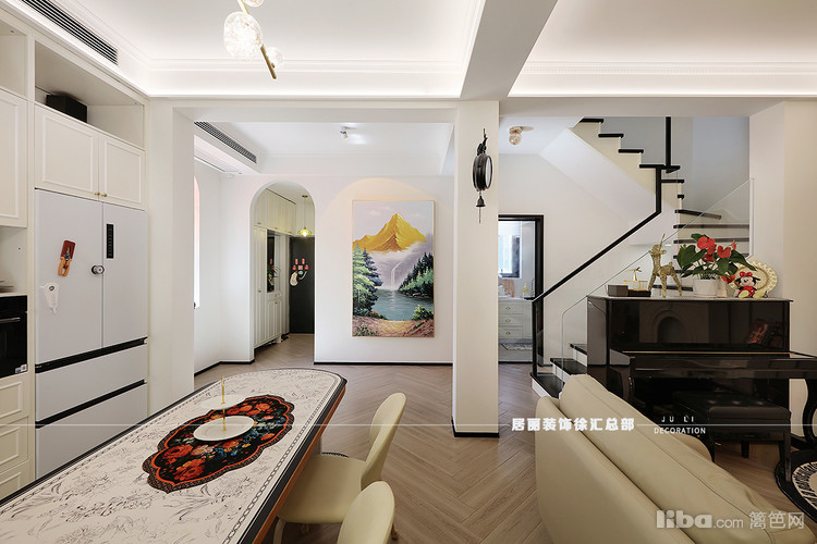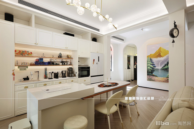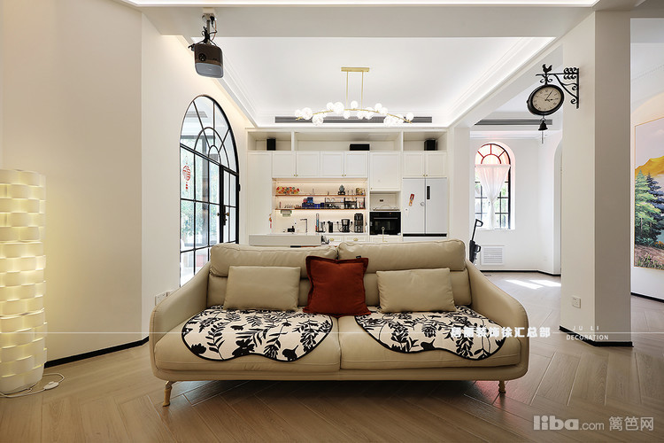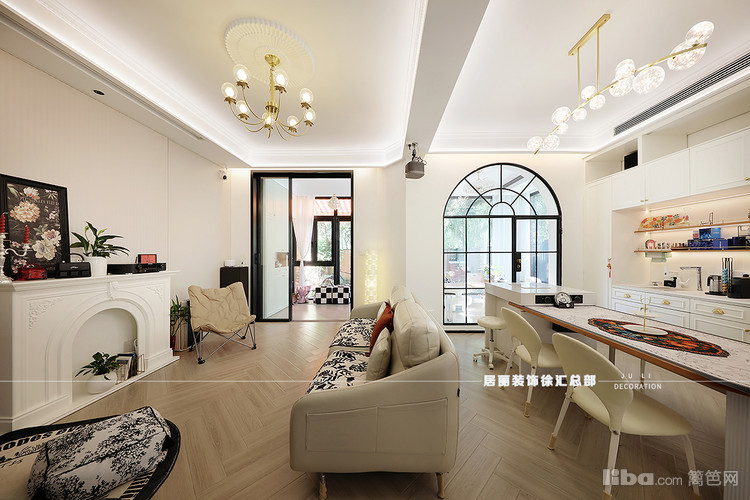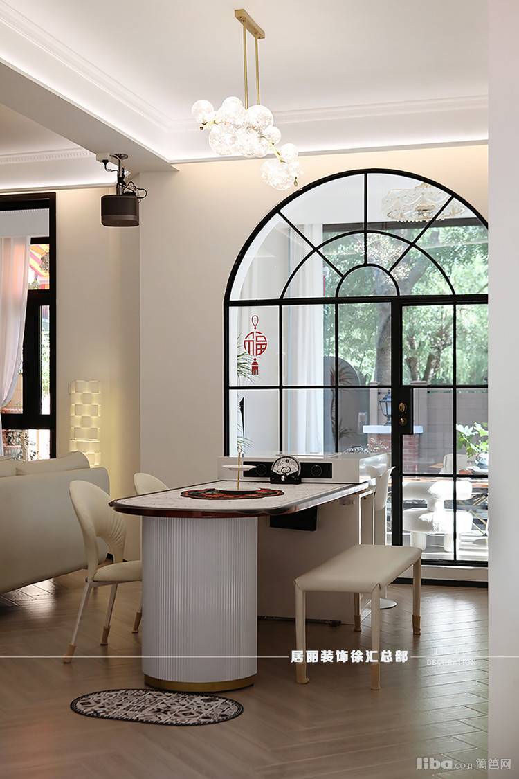 客餐厨开放式连通,用拱门、石膏线做软性分区,既保证空间通透,又通过线条增加优雅感,