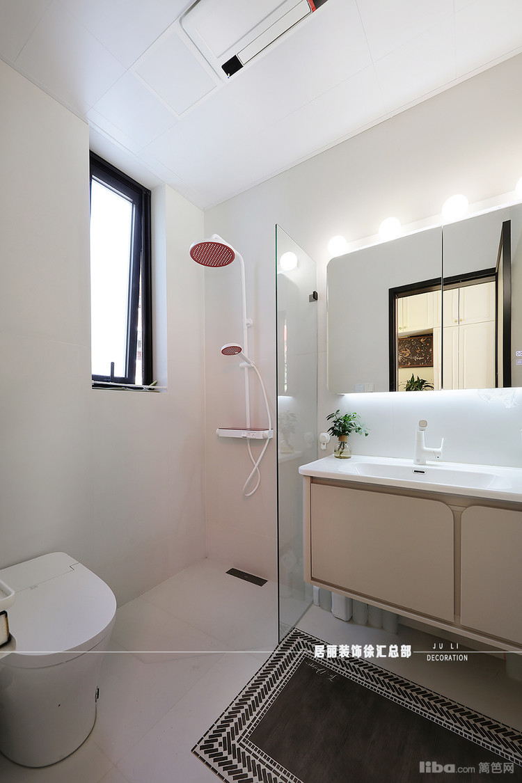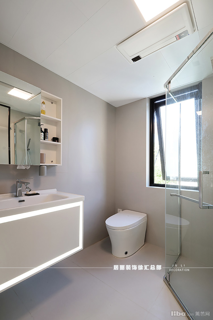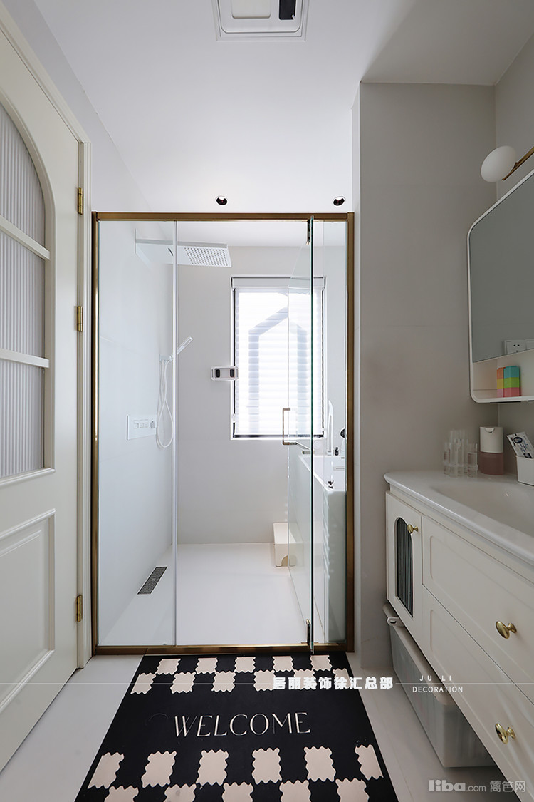 卫生间采用实用适配风格延续的设计,既满足不同场景的使用需求,也和全屋调性统一,用玻璃隔断做干湿分离,不压缩空间感;
