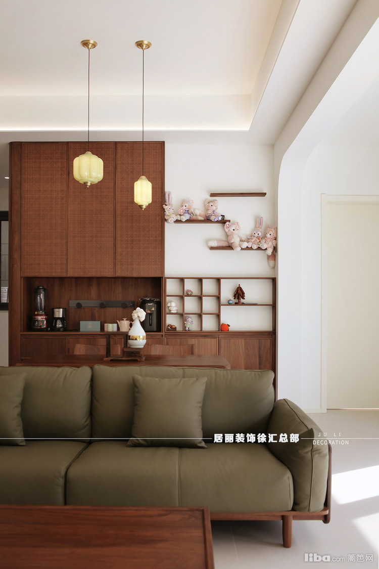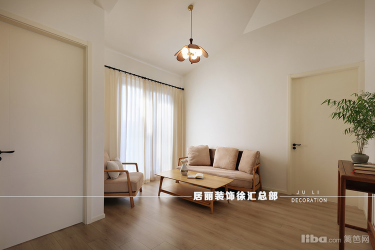 木质+布艺拼接的沙发,增加空间的柔和感,看起来暖呼呼的,慵懒又随性。