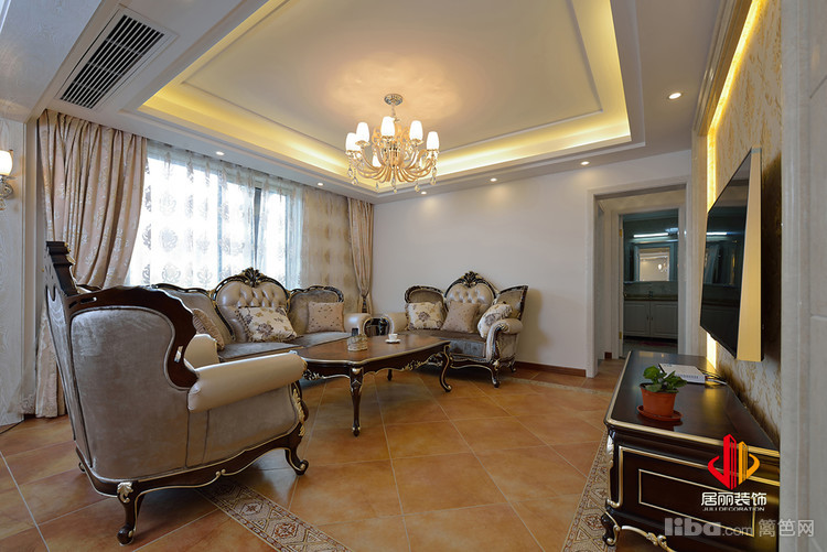 客厅采用新古典混搭打造,更突出强烈的文化气息。整个客厅色彩相差不大,但总体突出一种温馨感,墙上的壁画,在这里不仅成了很好的装饰品,同时也展现主人不凡的品位。