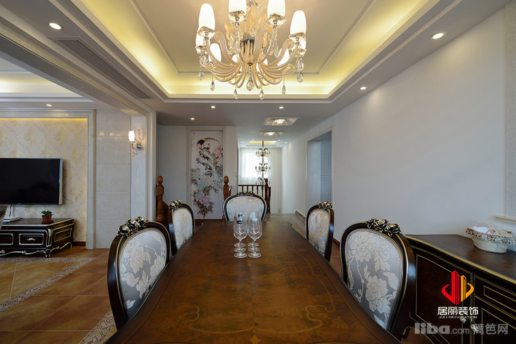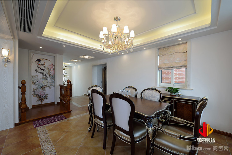 在造型设计时不是仿古,也不是复古,而是追求神似;餐厅的软装色调的搭配、提高了就餐的温馨之感。