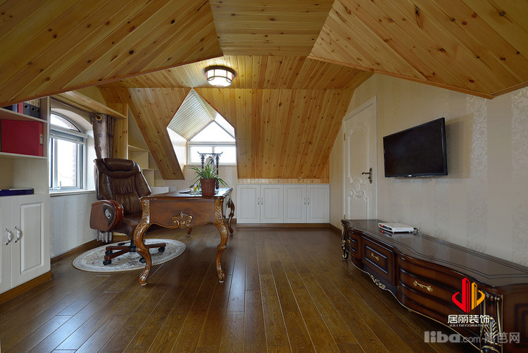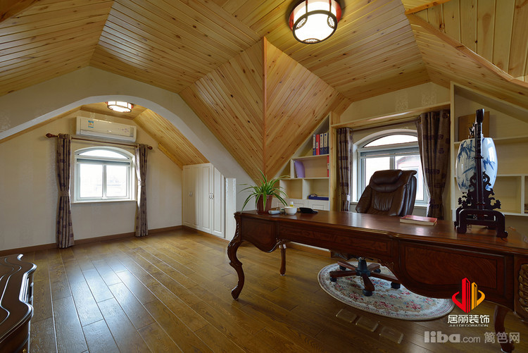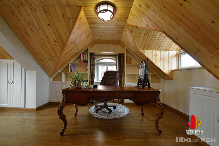 别墅的顶层阁楼单独空出,作为男业主的日常的工作办公之处。