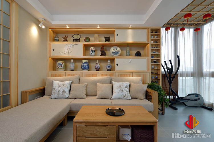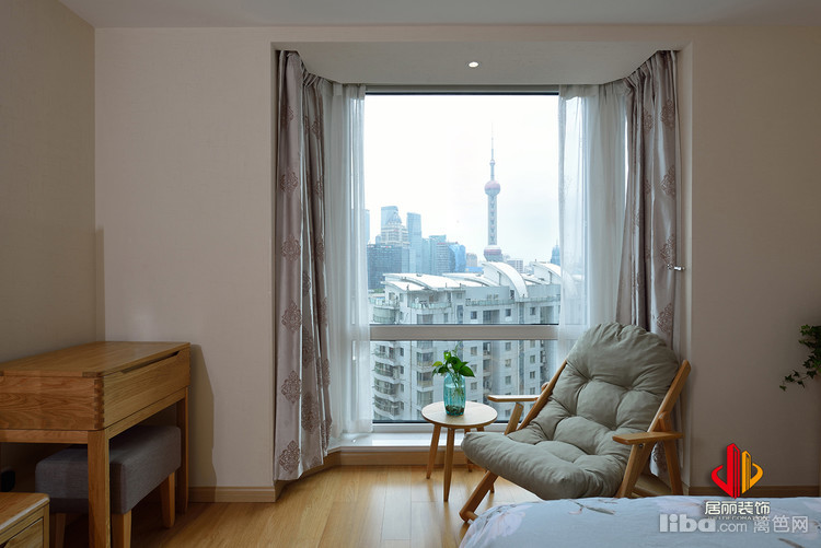日式空间营造善于利用一切自然光源吗,选择透光性较好的白色纱帘使整个空间更显宽敞明亮。