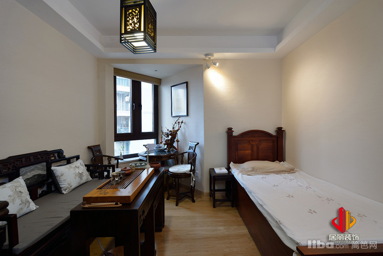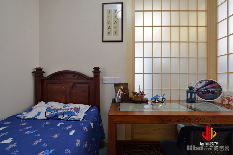 主卧延续客厅整体风格,将原木家具贯穿始终。床头两盏独特的日式壁灯,衣帽间的日式福司玛门,使整个空间充满浓浓的古典日式味道。