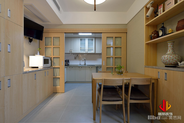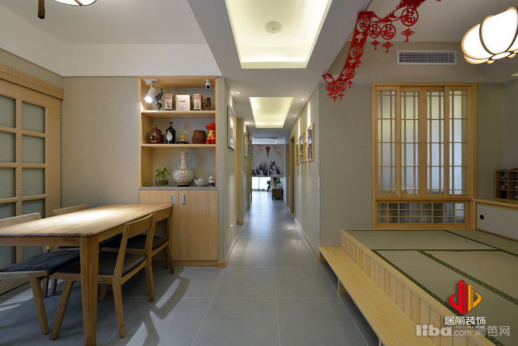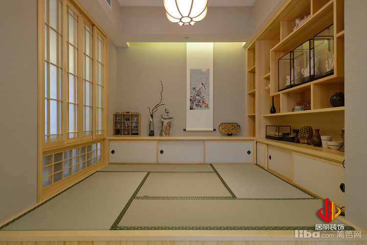 日式木格移窗让自然光线可以顺利进入和室,还能起到不错的隔断作用,有效的丰富了家居空间的层次感。
