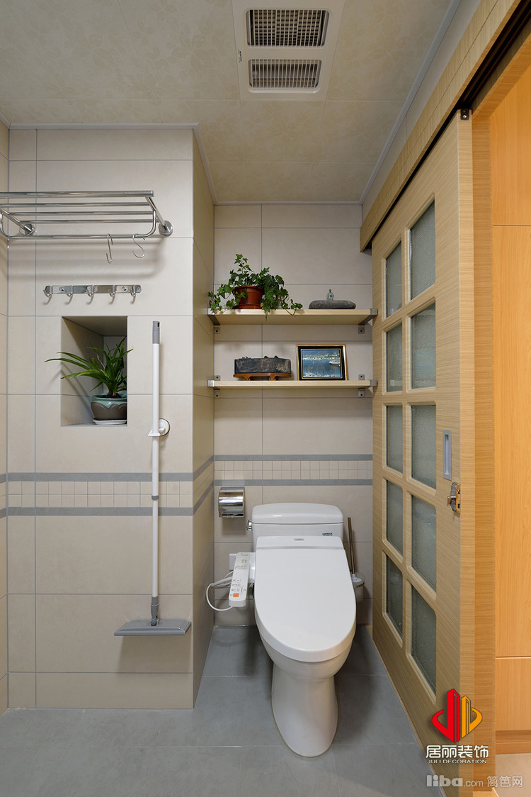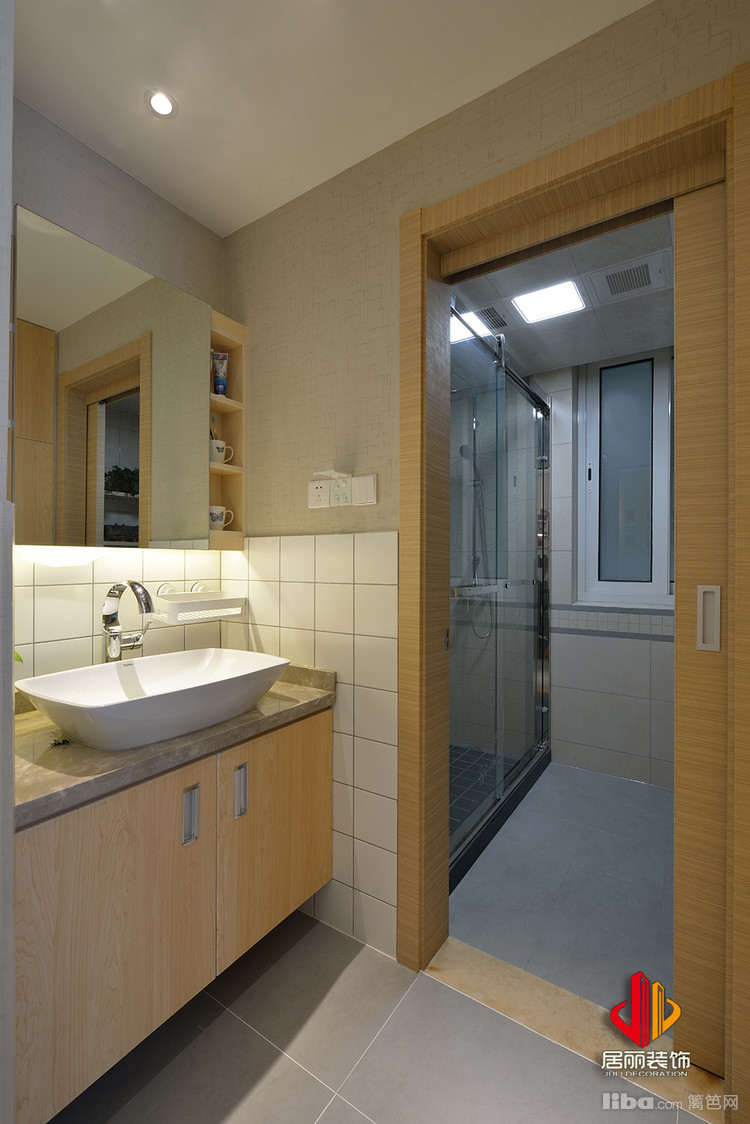 卫生间结合日式人性化的设计理念,变换出三分离是的卫浴空间,将洗手台移至卫生间外。