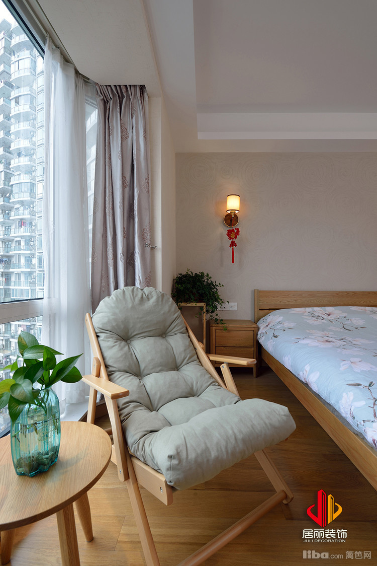 大面积落地窗前放上一把日式休闲布艺沙发躺椅,慵懒的午后时光,泡上一壶茶,品品茗、养养神生活就是如此的惬意。
