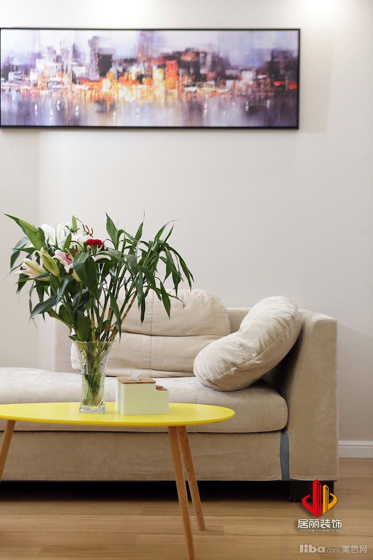 业主希望客厅有个舒服的沙发躺靠,并且客厅里能兼顾需要用笔记本电脑加班的要求。