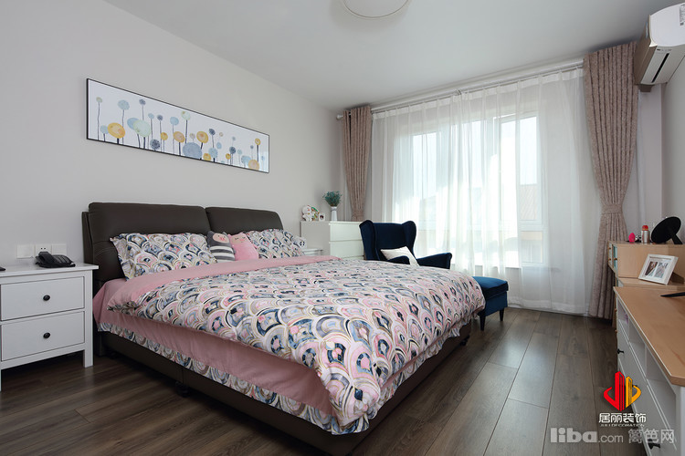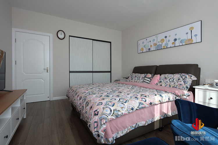 床头柜上的满天星瓶插、墙上的彩色挂画,带来舒适自然的视觉享受,给这个空间带来温暖自然的气息。