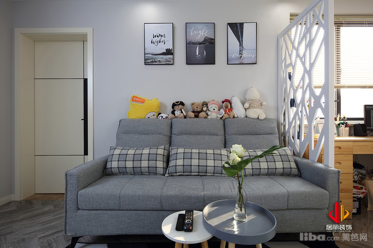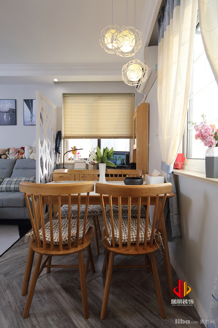 现有客厅在原来餐厅的位置,面积较小,所以简单吊顶,浅色涂料。