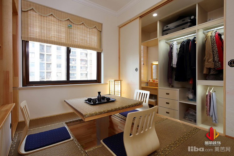 因为就两人住,所以在小房间划出一小块衣帽满足女主,哪么小房间分隔之后空间太小,干脆满做榻榻米即能来客时睡睡觉,又可以满足男主的品茶爱好。