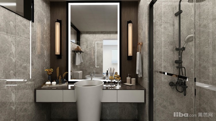 小而精致的空间,镜子好似占据了整面墙,却又通过镜面反射效果,增加空间视觉宽敞感。