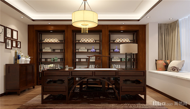古色古香与书房着实是非常搭的,配上简单大气的书柜和书桌,整体的感觉低调又大气。