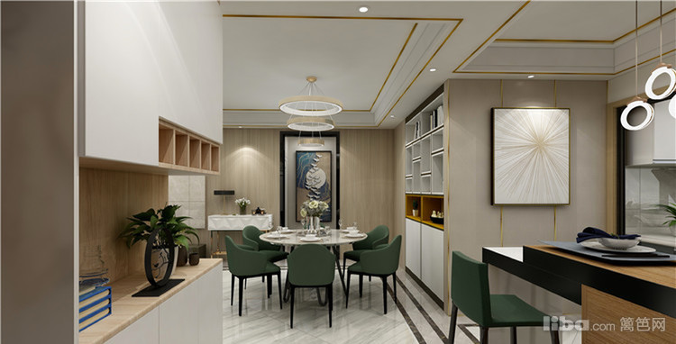 客餐厅之间未留有过多的空间,不过供两人同时经过也是绰绰有余了。橄榄绿的餐椅清爽而整洁,搭配上白色、米色的家具,给人一种清新的视觉感受。