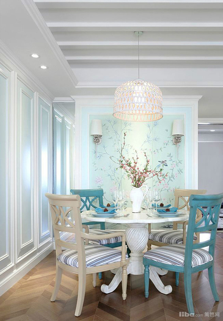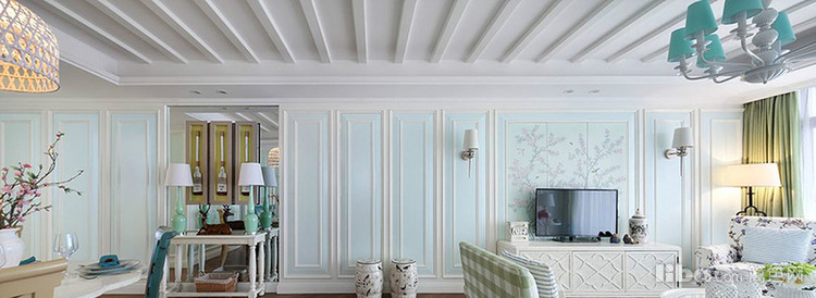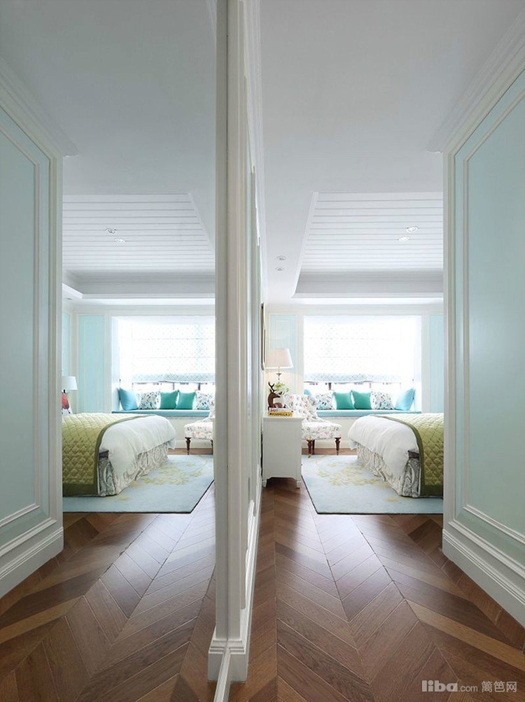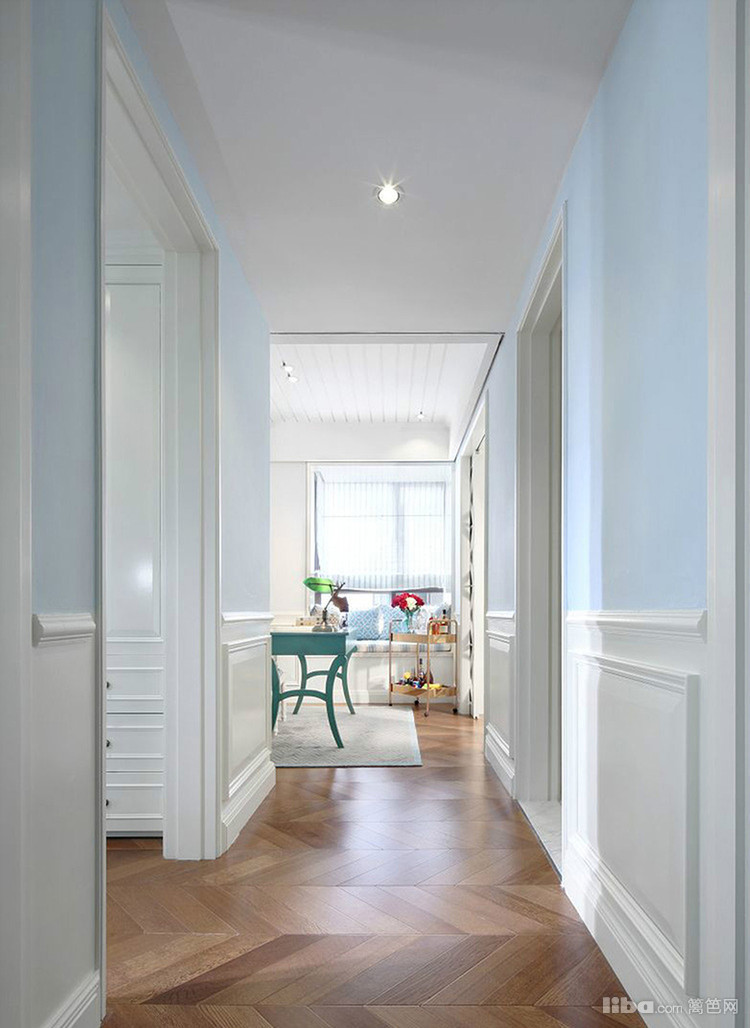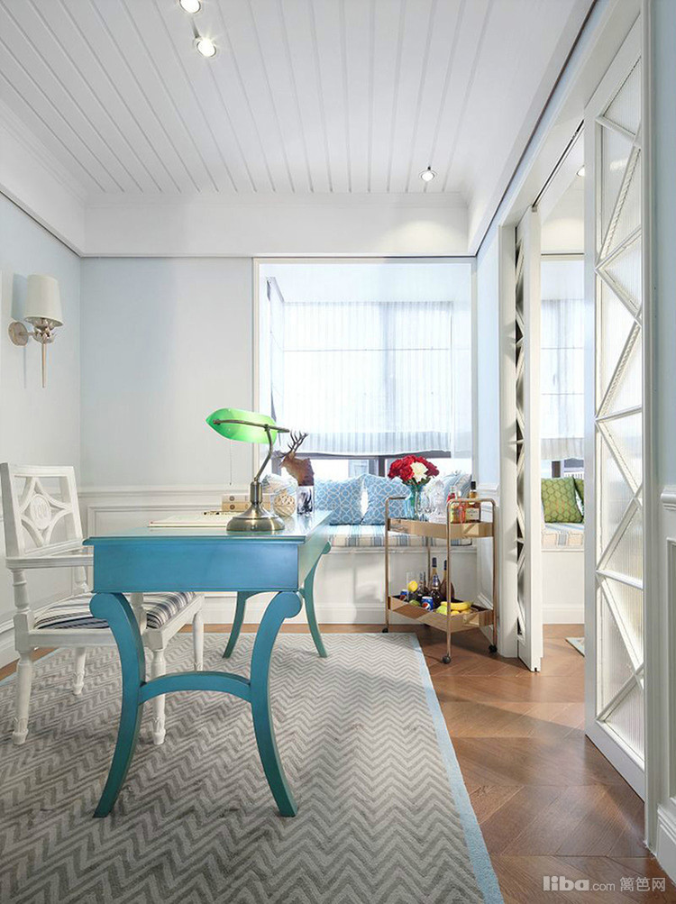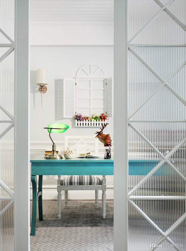 蓝绿与白色穿插着使用,丰富了空间层次感,即使是清雅的色彩,亦能绽放出丰富多彩的视觉享受。