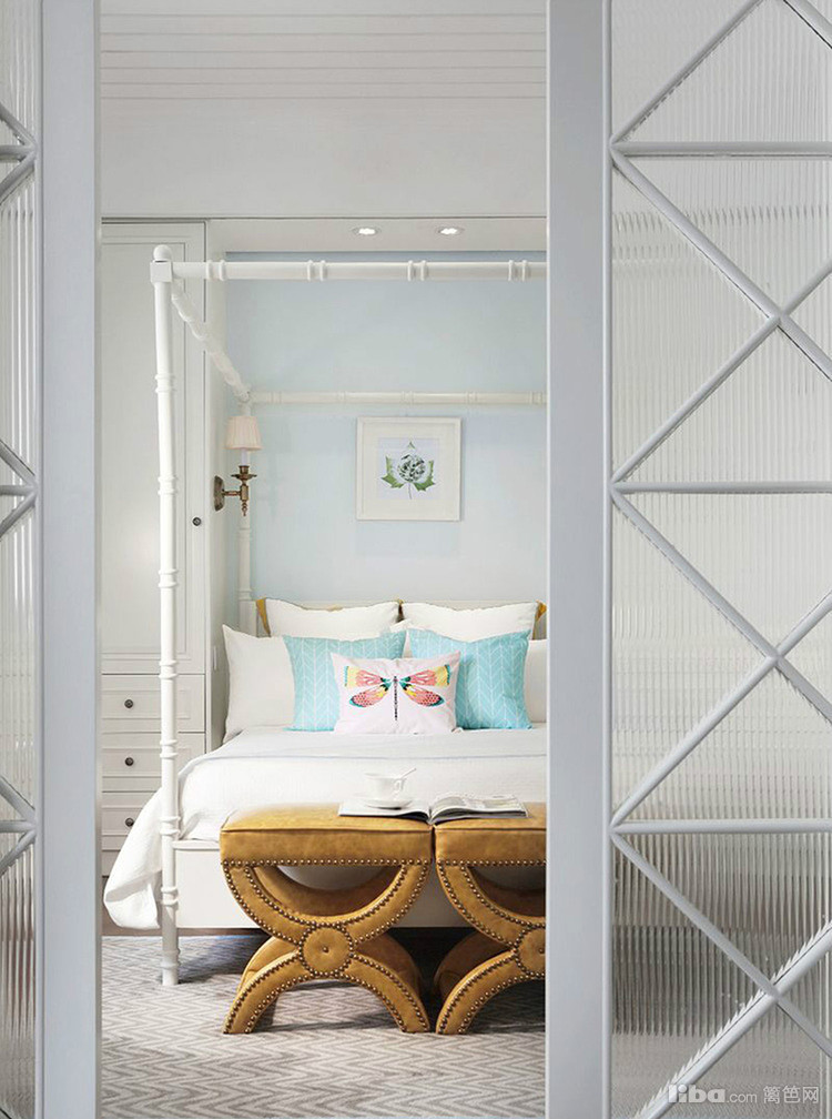 床铺周围架起的白色竹竿,平时是一种划分区域的隔断或者个性的装饰物,而待有需要时,支起蕾丝帷帐,则瞬间变成一个浪漫的公主房。
