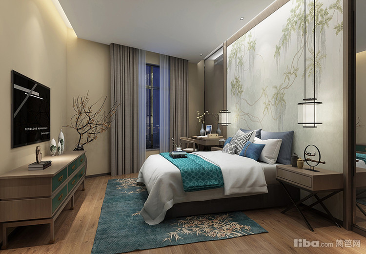 父母的房间走的是淡雅、温馨风,青竹与梅花元素在卧室中起到了一个很好的点缀效果,通过不同的演绎,传递出东方之韵,美极了。