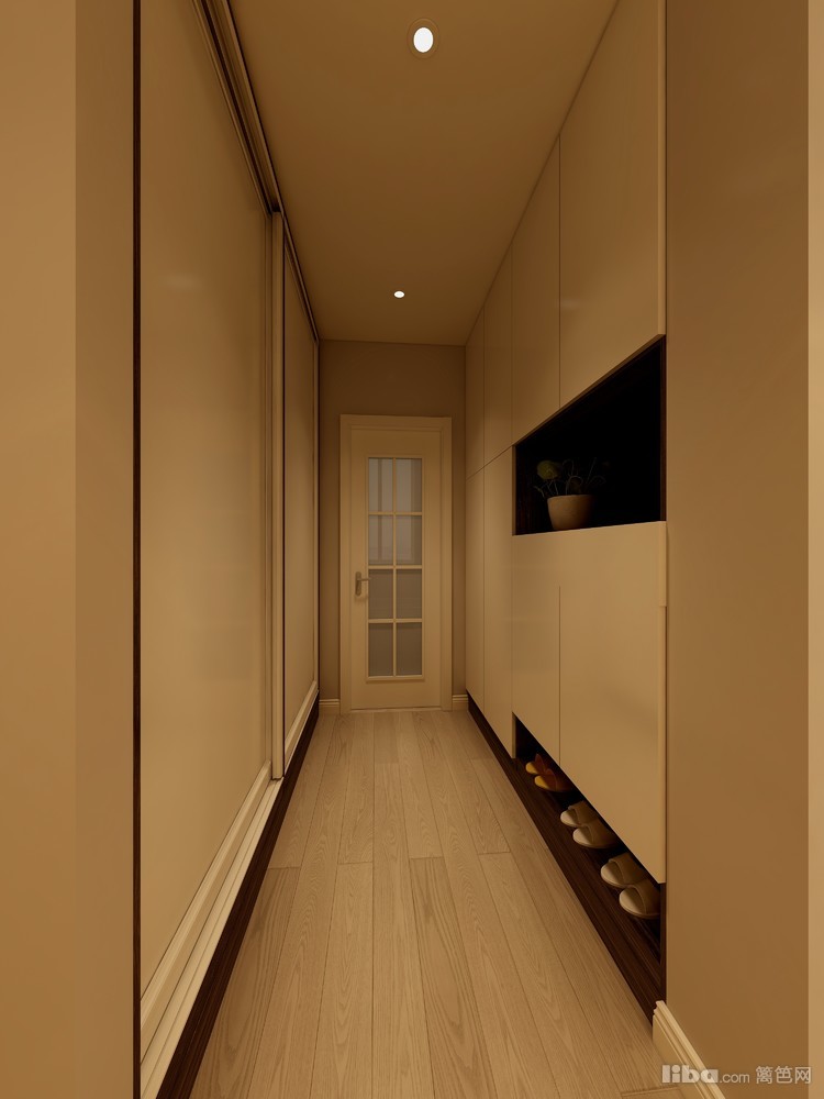 入户即是一条长长的走廊,一侧装置了顶天立地的定制柜,可以满足一家三口的鞋靴收纳需求,简约又实用。