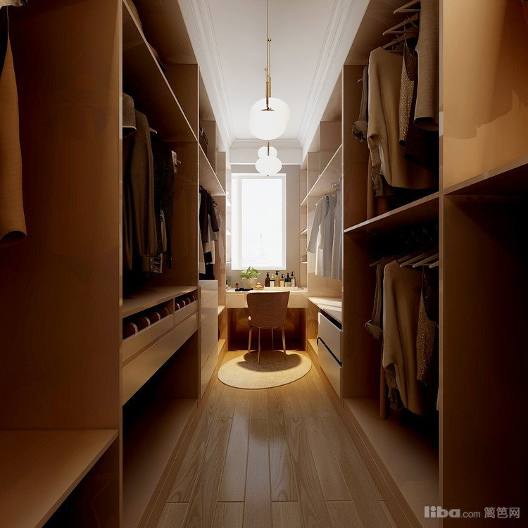 U型衣帽间,自带化妆台,满足了女主人的诸多梦想。
