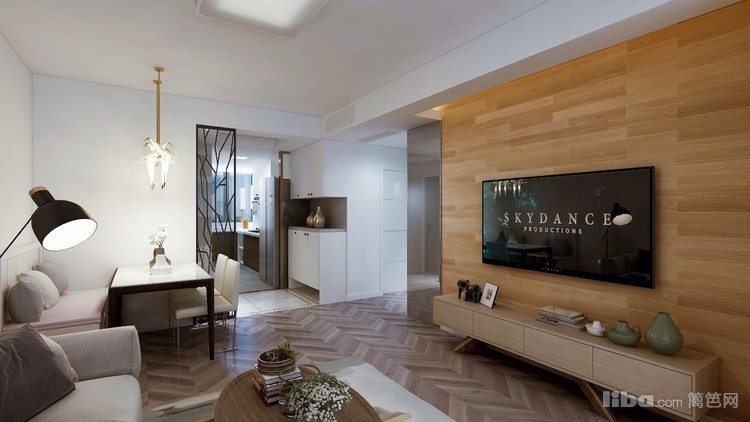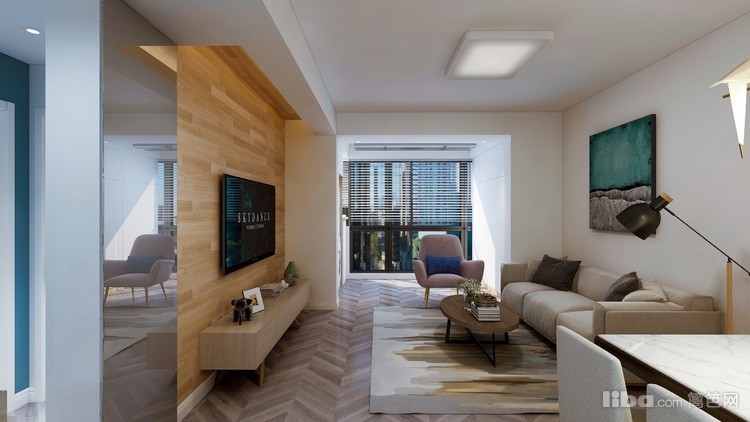 木质电视背景墙丰富了墙面视觉,同时也与实木地板相得益彰,在视觉上有着很好地拉升空间的作用。
