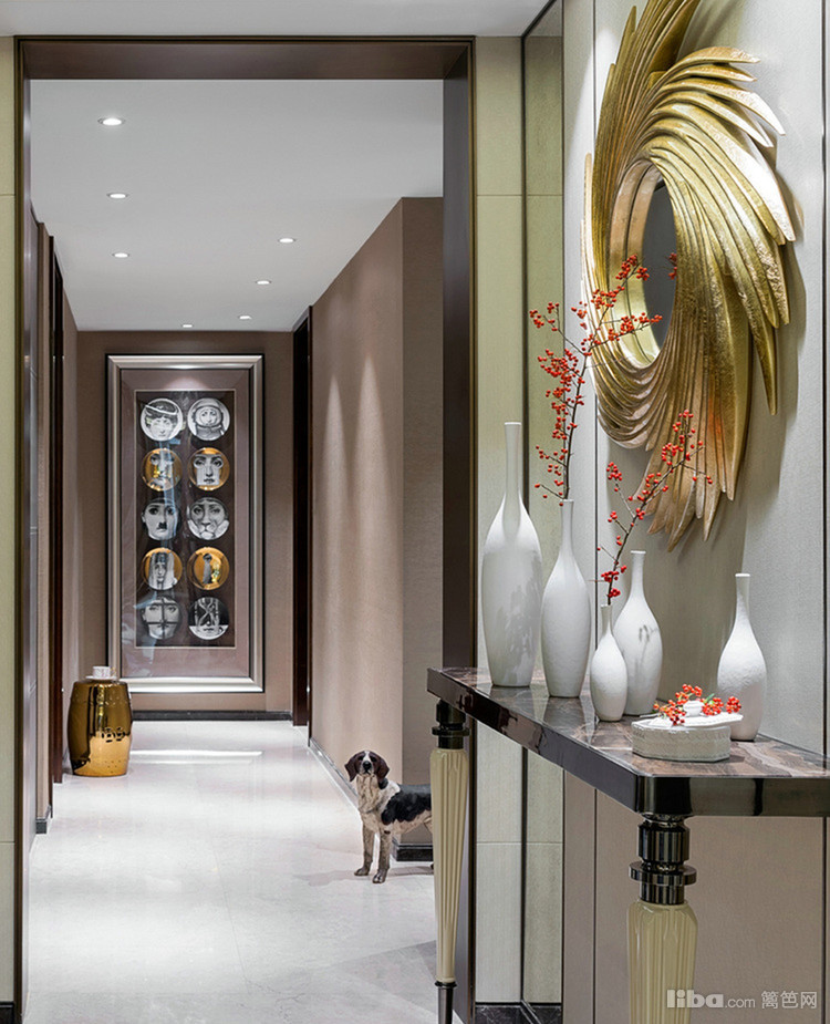玄关给人奢华、高贵的视觉效果,装饰上推崇精致与和谐。