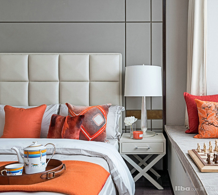 法式卧室具有一种开放式的美,显眼的橙色很是突出,通过一种刻意的呈现来展现业主悠然自得的生活态度。